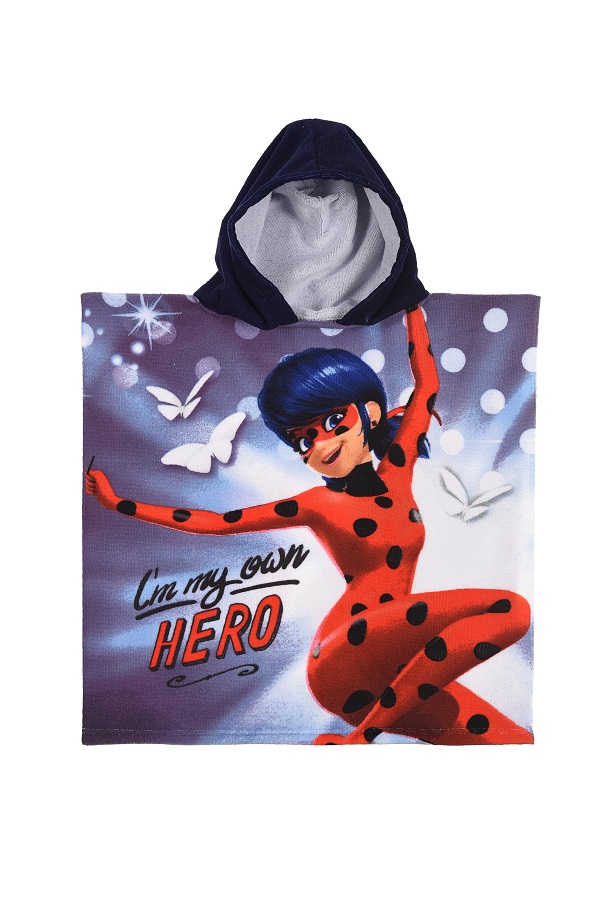 En cool, skön och praktisk badponcho som gör torkningen enklare och förhindrar dig från att bli kall. Trä på ponchon över huvudet efter att du har badat och problemet är löst! I utgåvan har du favoriten Ladybug från Disney på framsidan, hur coolt!
