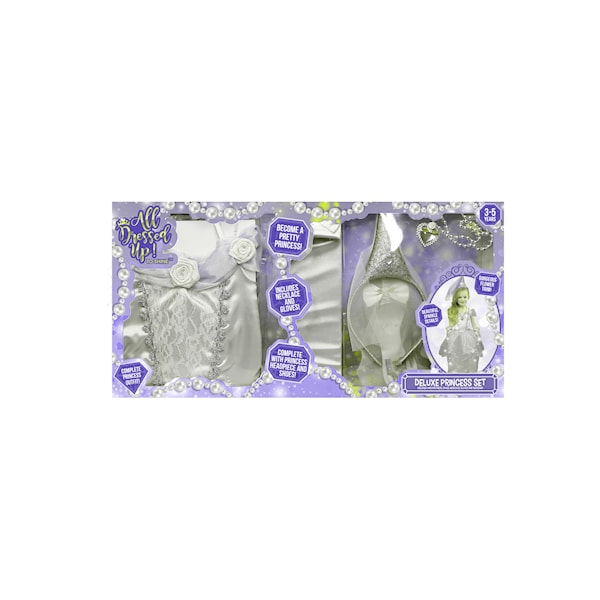 Kliv in i en magisk värld med All Dressed Up Deluxe Maskeradset - Prinsessa! Detta fantastiska set innehåller allt som behövs för att förvandla ditt barn till en förtrollande prinsessa. Med en elegant klänning och matchande accessoarer blir leken ännu mer spännande och sagolik. Perfekt för maskerad, temafester eller bara för roliga stunder hemma.