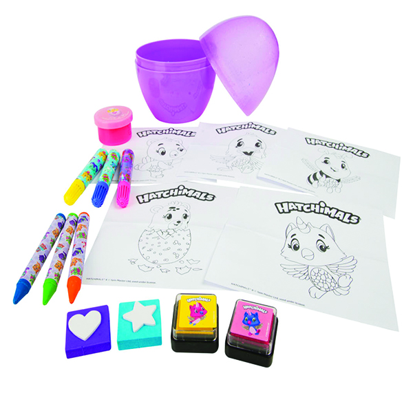 Hatchimals är djur som finns innanför ett prickig ägg. Den här fina Hatchimals prickiga ägget med pysselinnehåll passar barn som älskar att måla och rita. Ägget används som förvaring av pysselinnehållet så att det går snabbt och smidigt att hitta pysselsetet så fort barnen vill pyssla. Det här setet uppmuntrar barnen att vara kreativa och fantasifulla.