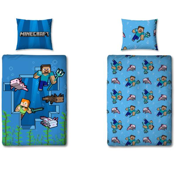 Köp ett bäddset som består av påslakan och örngott i Minecraft motiv. Ena sidan av påslakanet är det motiv på Minecraft karaktärer och den andra sidan är det motiv på Minecraft symboler.