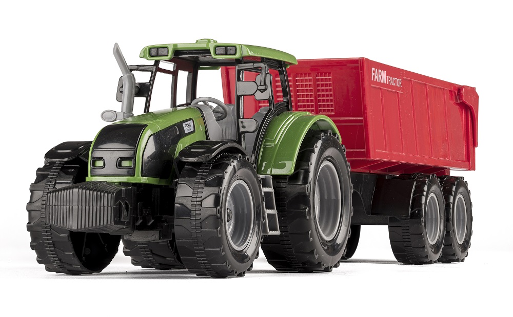 Fräcka leksakstraktorer med ett tillhörande släp! Den perfekta leksaken för barn som älskar bilar och traktorer! Leksakstraktorn är friktionsstyrd som innebär att om du drar den längs marken och släpper så fortsätter fordonet köra av sig själv en bit!