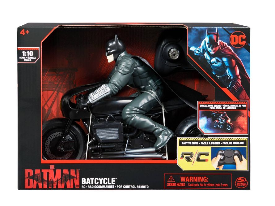 Den dubbla joystick-fjärrkontrollen har sensorer som säger till när du börjar gå utanför räckvidden så att du vet när din Batmotorcykel behöver köra tillbaka inom räckhåll, laddas upp och kan börja köra direkt. Den detaljerade dekoren och inspirerad av The Batman Movie.