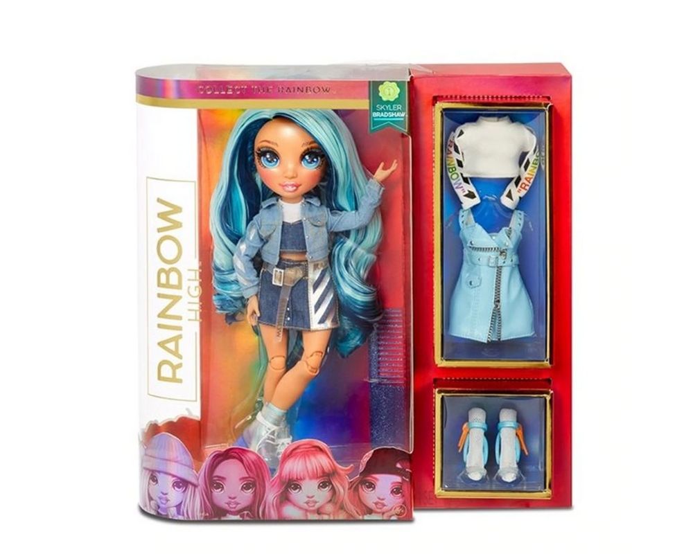 Dockan Skyler Bradshaw från serien Rainbow High. Det är nämligen bara vissa med ett öga för färgglad mode som kan följa regnbågen till modeskolan som kallas Rainbow High.