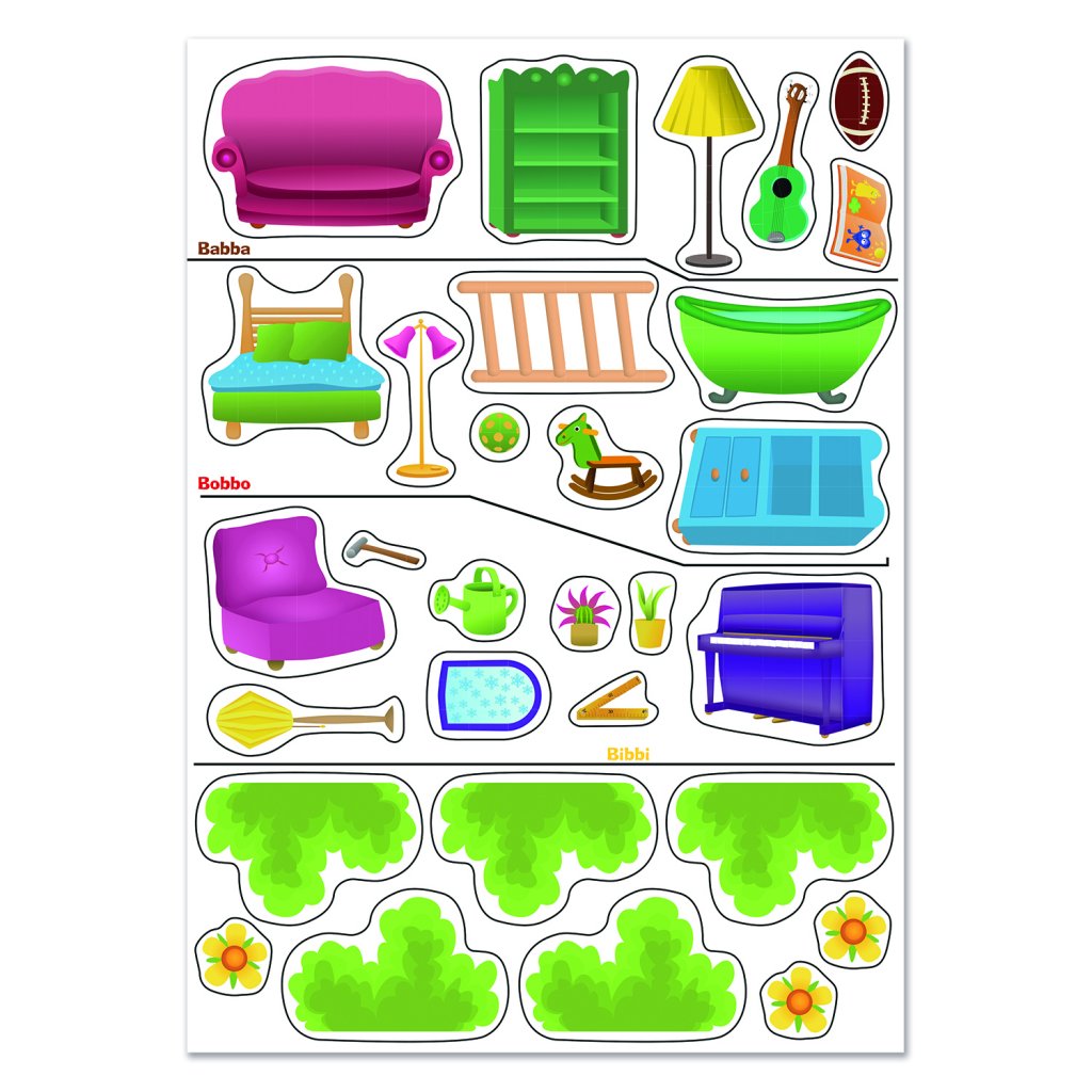 Kom och lek i Babblarnas värld! Här bor Babba, Bibbi och Bobbo i varsitt hus. Vem bor var? När barn babblar, pratar, sjunger och leker tillsammans med Babblarna, utvecklar de samtidigt sitt eget tal och språk. De lekvänliga husen i roliga färger och former är gjorda av trämaterial och du kan enkelt sätta ihop och plocka isär dem. Varje hus har öppningsbara dörrar och en matta i samma färg som den som bor där. Den medföljande lekplattan i stadig kartong kan sättas hur du vill och har vägar så att Babblarna hittar fram till varje hus. Du får också ett ark med klistermärken att dekorera husen med. Missa inte de andra Babblarnas hus, där Dadda, Diddi och Doddo bor. Babblarnas hus passar perfekt till figurerna av Babblarna från Micki.