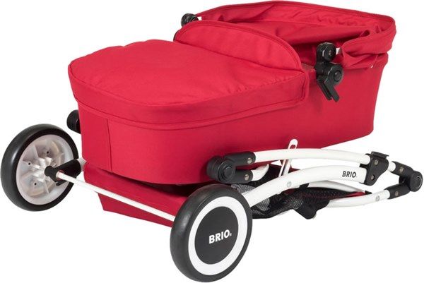 Brio dockvagn spin i en röd färg! Nu kan barnen följa med och handla och lasta sin egna dockvagn med varor precis som dem vuxna!