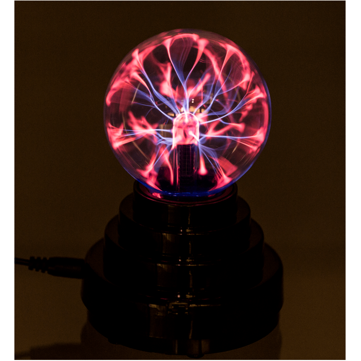 Plasma kulan reagerar på beröring och skapar häftiga ljuseffekter. Elektroden i kulans mitt skapar elektromagnetiska vågor som skapar färgade blixtrar i gasen som finns inuti. Din kropp fungerar som en elektrisk ledare och när du rör kulan kommer elektronerna dras till dig.