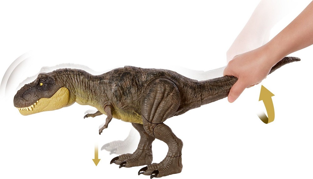 Stomp N Attack Tyrannosaurus Rex har en realistisk utseende av en riktig T-Rex. T-Rexen kommer från netflix serien Dino Escape och utseendet matcher på pricken på hur utseendet ser ut från serien! För Att få T-rex att gå till attack tryck ner den gömda knappen på ryggen och så öppnar T-rexen hans mun och går för ett högt vrål som får vem som helst att börja skaka! vrid svansen höger och vänster för att få benen att börja röra på sig och ger ifrån sig *stomp* ljud. Inget kan stoppa en T-Rex inte ens en metal mask! Kan du Lyckas springa i väg från en T-Rex eller kanske överlista den intelligens ?