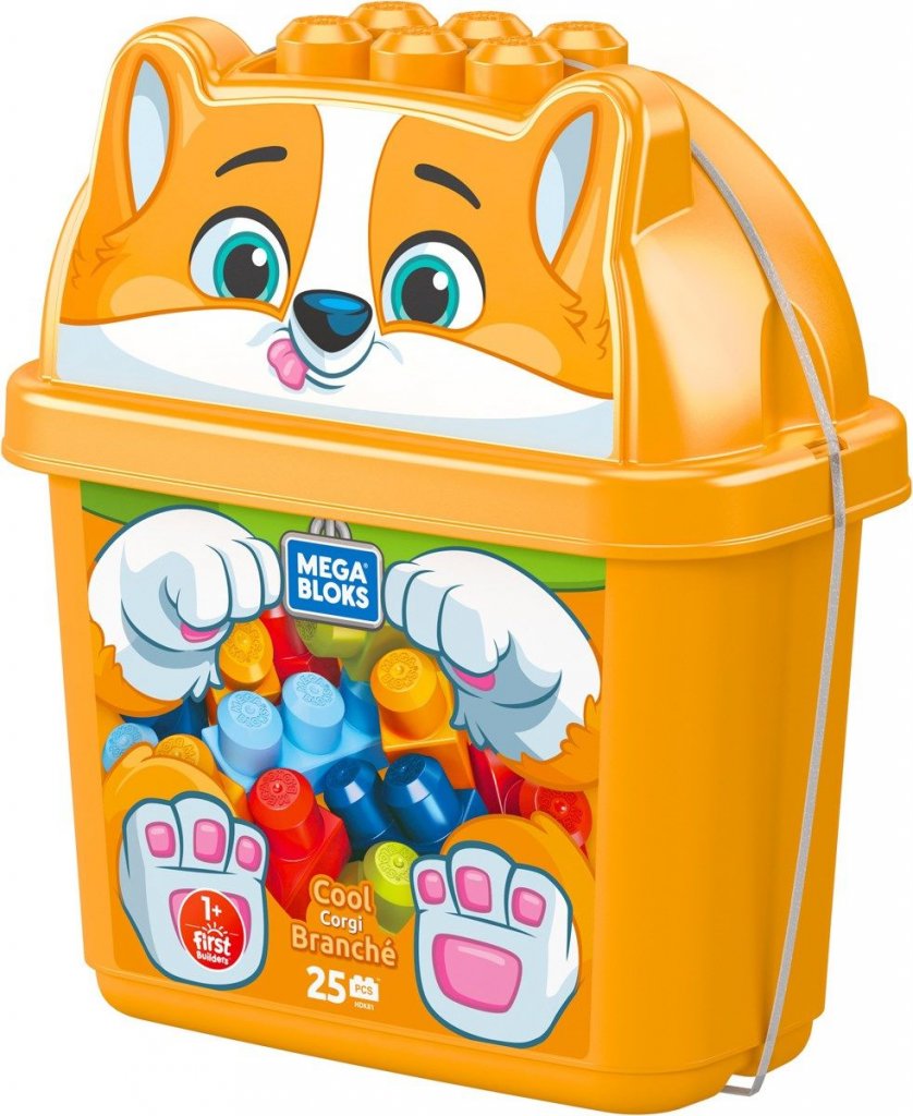 Lek och ha kul med 25 stora klossar i söta hinkar på djurtema! Fantasin tar fart! Varje söt djurhink innehåller 25 stora, färgglada byggklossar för små händer. Klossarna är lätta att hantera och sätta ihop, så att barnen kan träna finmotoriken och använda kreativiteten när de staplar! Ditt barn kan börja bygga direkt på hinken och när leken är över går allt enkelt att packa undan i den söta förvaringslådan. Välj bland olika djur, som ett skrattande lejon och en glad elefant! Alla säljs separat. Färger, figurer och detaljer kan variera. Perfekt för First Builders™, från 1 år och uppåt25 stora byggklossar i klara färgerDjurhinkar med enkel förvaringVälj mellan lejon och elefant. Säljs separat.First Builders™-leksakerna passar för barn från 1 år och uppåt och rekommenderas av Fisher Price®. De passar perfekt för små händer och utvecklar fantasin och grovmotoriken genom praktisk lekKlossarna är kompatibla med alla Mega Bloks®-byggleksaker för oändlig, utvecklande lek!