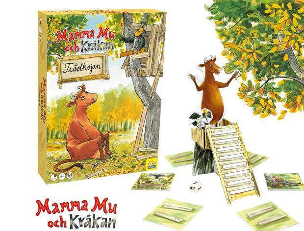 Trädkoje-skoj med Mamma Mu och Kråkan! Den gamla stegen upp till Mamma Mus trädkoja har gått sönder! För att kunna ta dig upp och leka i kojan måste du bygga en ny stege. Speltid ca 10 minuter, för 2-4 spelare från 4 år. Mamma Mu och Kråkan hjälper dig att samla ihop nya brädor. Men se upp så att dina medspelare inte knycker dina brädor och bygger sina stegar snabbare än du! Och håll ett öga på bonden, han skulle ju få vingslag om han såg en ko klättra i en trädkoja.