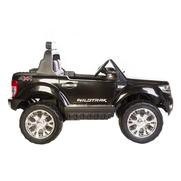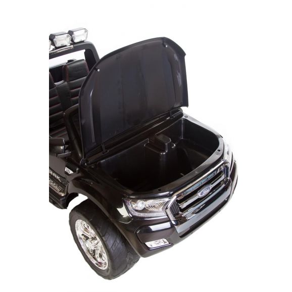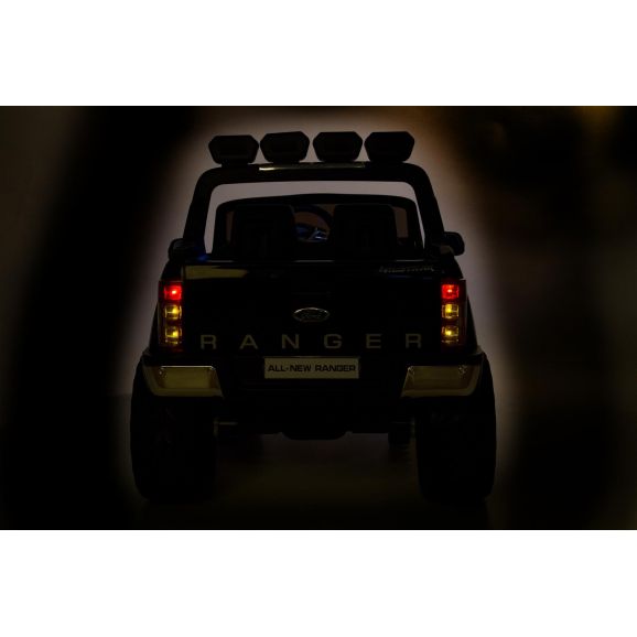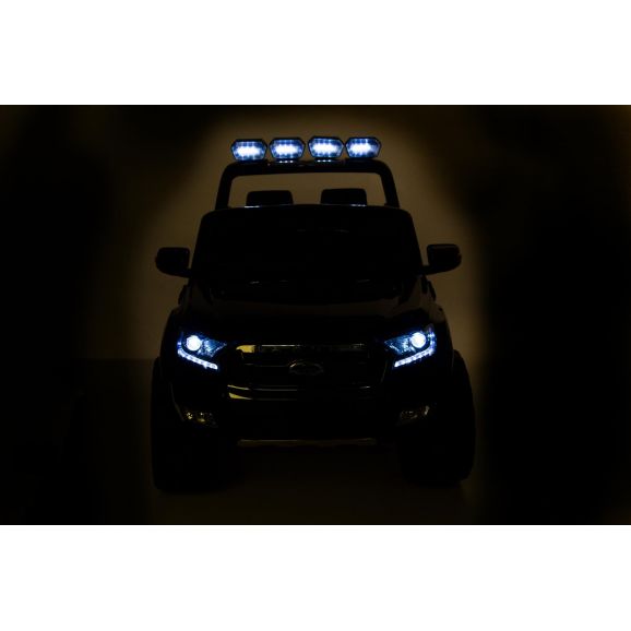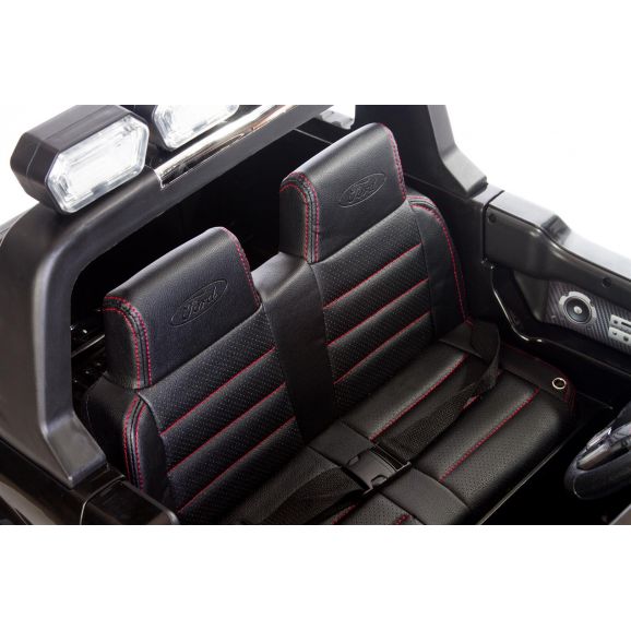 Fräck och cool elbil Ford Ranger med svart snygg design och lädersäten. Styr bilen med fjärrkontroll, barnet kan sitta i bilen medans vuxen styr bilen. Barnen kan köra bilen själva efter att de lärt sig kontrollera bilen själv. Elbilen har exklusiva gummidäck för tystare och mjukare körning samt ljud och ljusfunktioner, glöm inte sätta på ljusen på kvällen.