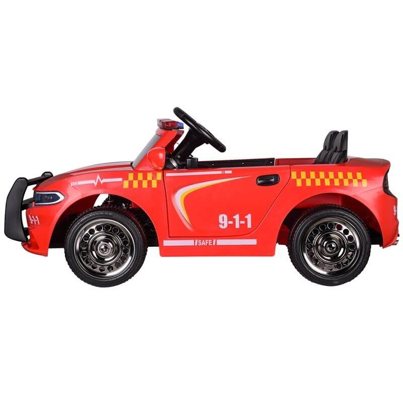 Elbrandbilen till barn från Azeno är utrustad med ett kraftfullt 12V-batteri, som i sig driver 2 motorer vilket gör elbrandbilen perfekt för körning på alla slags väglag som asfalt, kakel, gräs etc. Elbrandbilen är utrustad med framljus samt olika ljud effekter så barnet lättare ska leva in sig i brandmans rollen!