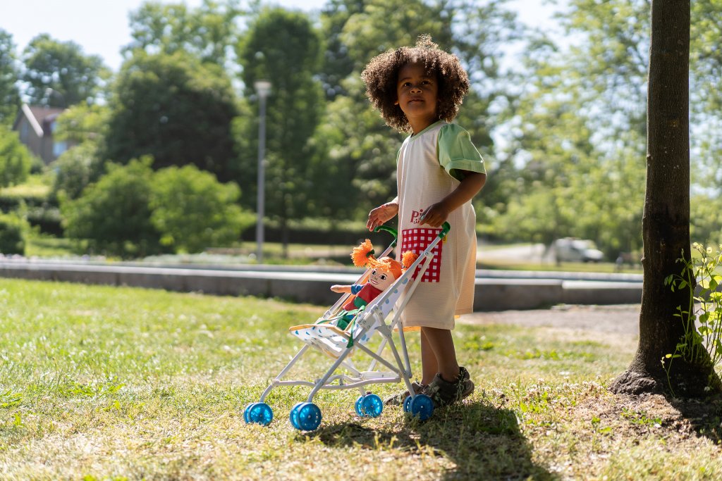 Ut på äventyr med Lilla Gubben! Pippis sulky är den perfekta dockvagnen att ta med på resan. Dockvagnens mönster är hämtade från Pippis trogna häst, Lilla Gubben och han finns även med som illustration på klädseln. Spänn fast säkerhetsbältet så dockan är redo för en promenad ute i solen! Pippi - Lek med världens starkaste flicka! Det är inte konstigt att Pippi är många barns favorit. Astrid Lindgrens berättelser om Pippi Långstrump fortsätter att underhålla barn och Ingrid Vang Nymans klassiska illustrationer ger leksakerna lekfullt liv.