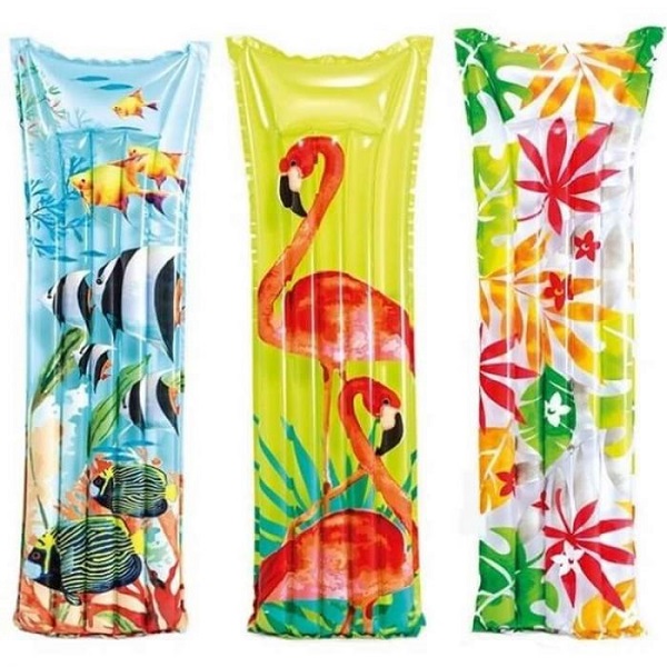 De här luftmadrasserna med 2 luftkamrar (183 x 69 cm) är perfekta till användning både i trädgården, stranden och i poolen. Finns i 3 färska färgrika designer med stora Hawaii-motiv.