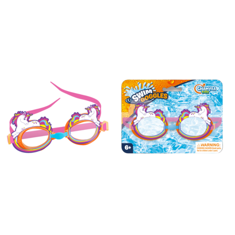 Simglasögon med enhörningsdesign, perfekta för barn som vill simma med stil. Gör varje simtur till ett sagolikt äventyr! Rekommenderas från 6 år.